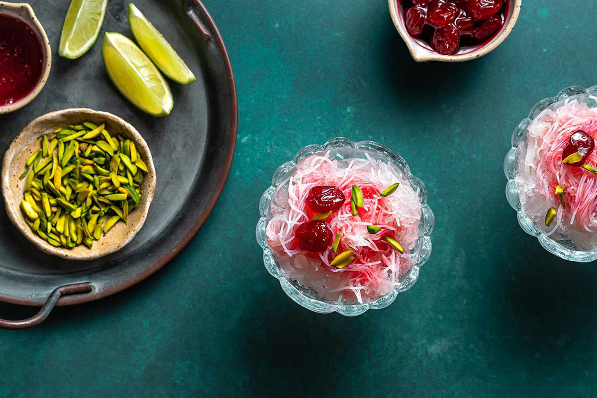 فالوده ایرانی را بهعنوان یکی از نخستین دسرهای یخی تاریخ میدانند. رشتههایی نشاستهای که زیر دندان میآیند، لطف فالوده ایرانی را چند برابر میکنند. این رشتهها در شربتی نیمهمنجمد از شکر، عطر گلاب و چاشنی آبلیمو غوطهورند و حسابی خنک میشوند. اغلب هم با آلبالو یا شربت آلبالو سرو میشود تا آن تضاد رنگی زیبا و طعم ملس بینظیر را بسازد.