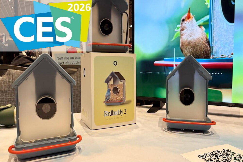 دو مدل دانهخوری هوشمند موسوم به «Birdbuddy» به نمایشگاه CES آورده شده است که میتواند پرندگان را از روی آوازشان شناسایی کند.